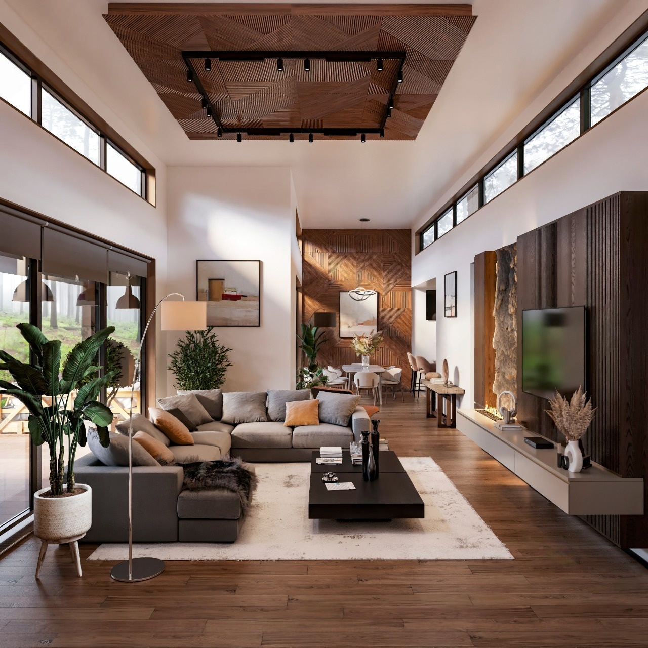 - просторная гостиная‑столовая — сердце дома для семейных мероприятий;